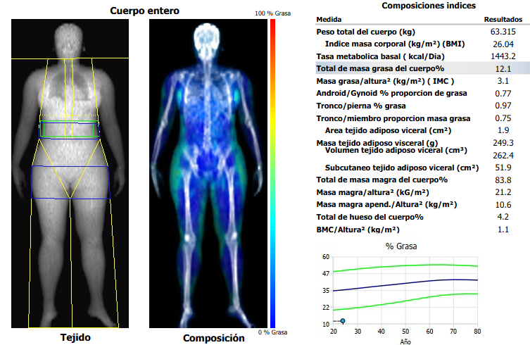 La densitometría de grasa corporal es una prueba rápida e indolora que analiza la composición corporal, es decir, cuánto del peso total corresponde a: