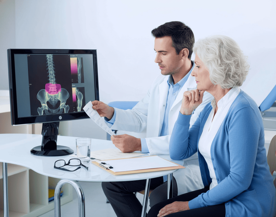 Cuando los huesos se vuelven frágiles como consecuencia de la osteoporosis, pueden ocurrir las fracturas por compresión vertebral. Estas últimas se presentan cuando las vértebras se aplastan y el espacio entre ellas disminuye en un 15-20%. Esta compresión ocasiona dolor de espalda crónico, pérdida de estatura (razón por la que muchas personas mayores parecen encogerse a medida que envejecen), cifosis (o espalda jorobada), pérdida del equilibrio (que aumenta el riesgo de caídas) y, en ocasiones, síntomas neurológicos como entumecimiento, hormigueo o debilidad.