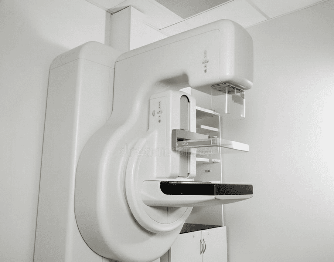 Una unidad de mamografía consiste en una caja rectangular que contiene el tubo que genera los rayos X. La unidad se utiliza exclusivamente para los exámenes de rayos X en la mama, con accesorios especiales que permiten que sólo la mama se quede expuesta a los rayos X. Conectado a la unidad se encuentra un dispositivo que sostiene y comprime la mama y la posiciona para poder obtener imágenes de diferentes ángulos.